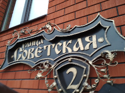 Кованые таблички – эффективное решение для обрамления фасада жилого дома или офиса. Такие таблички уместны на фасадах ресторанов, баров, отелей и на других коммерческих объектах.